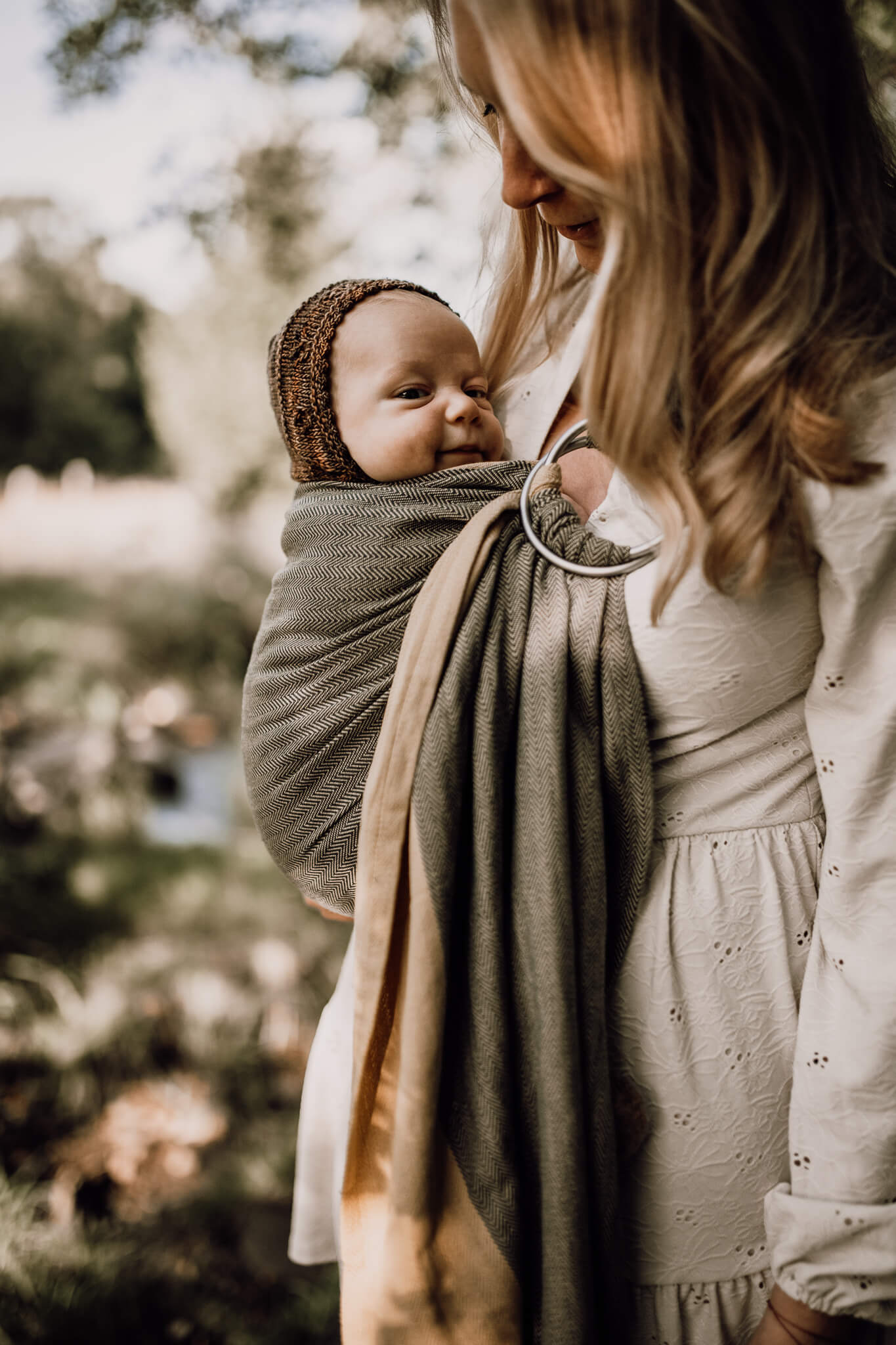 Our handwoven ring sling combines ultimate wearing comfort with sustainable materials and modern design. It allows you to carry your baby quickly and effortlessly on your hip.