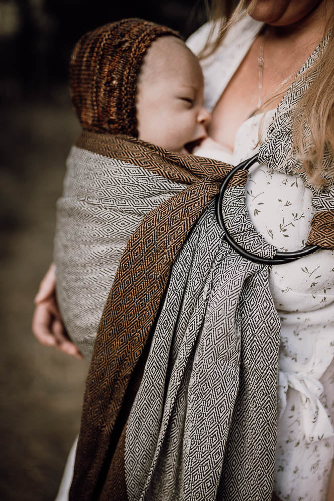 Our hand-woven ring sling combines maximum comfort with sustainable materials and modern design. It allows you to carry your baby on your hip quickly and easily.