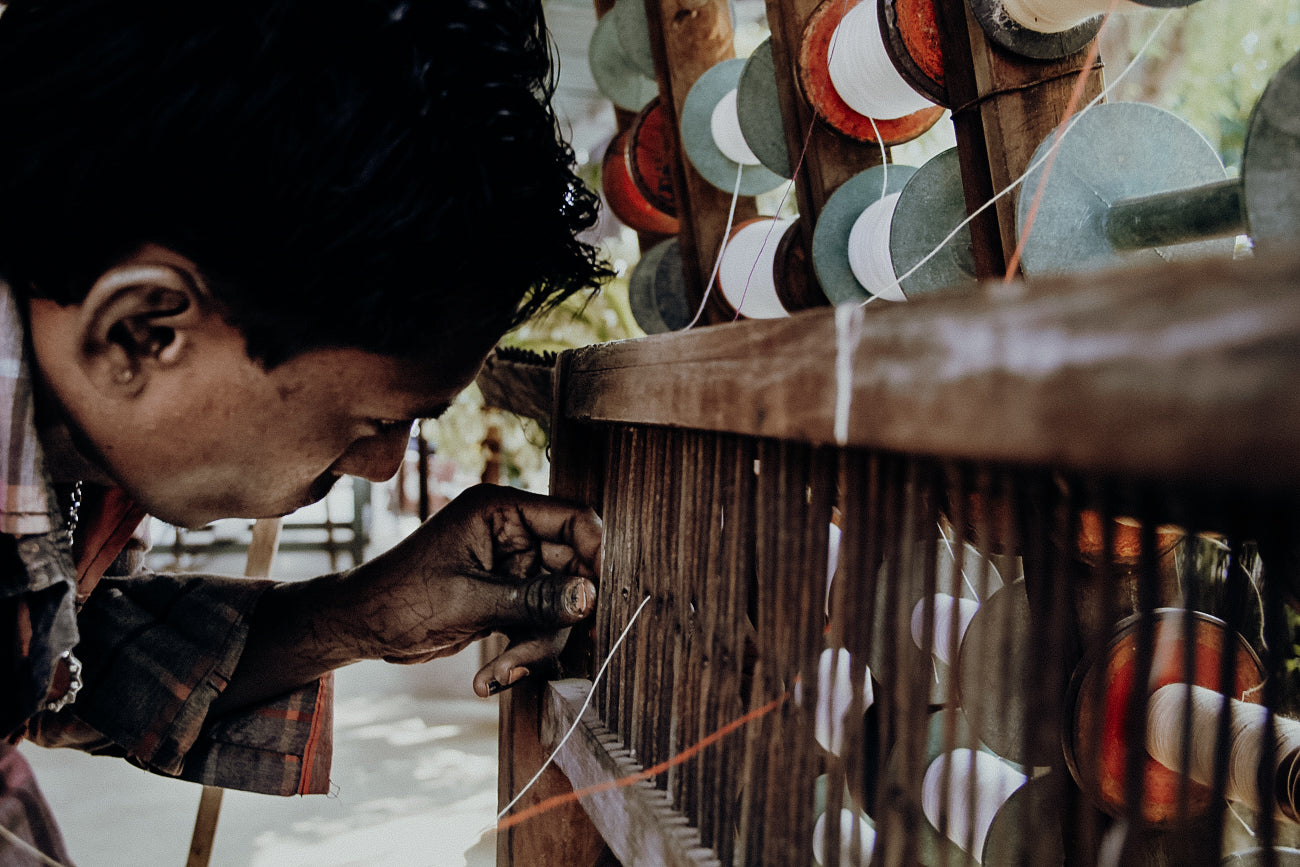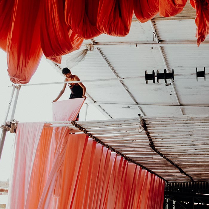 Nous avons choisi l’Inde comme lieu de production car nous apprécions l’Inde comme berceau de la fabrication textile pour ses techniques traditionnelles. Nous soutenons un projet social indien avec 1 % de nos revenus, payons des salaires équitables et réinjectons 100 % de l'eau utilisée dans le processus de teinture dans le cycle naturel.