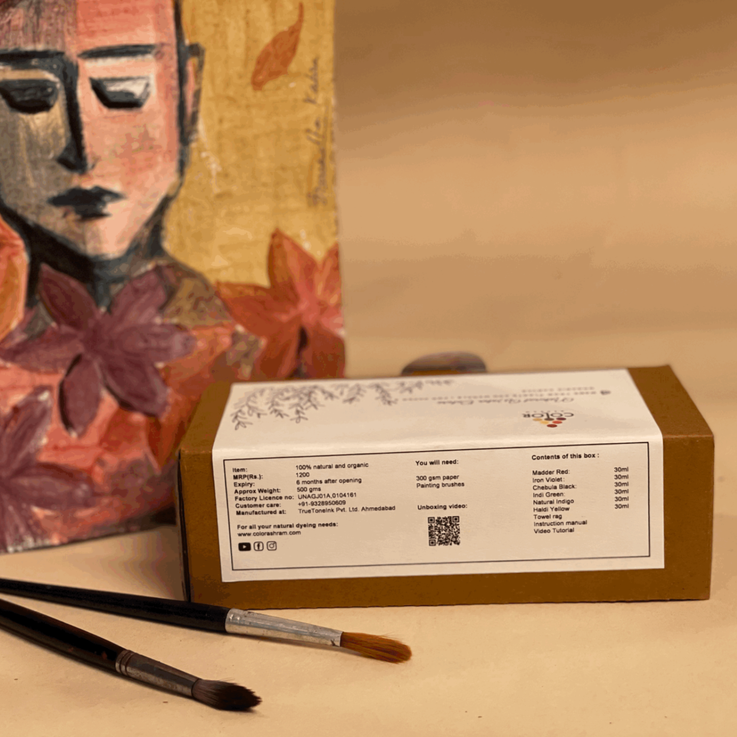 Ja! Das gibt es und dieses Set ist der perfekte Einstieg! Es ermöglicht dir, auf Aquarellpapier oder Leinwand mit unseren gebrauchsfertigen natürlichen Wasserfarben zu malen. Es umfasst sechs Farben à 30 ml (Madder Rot, Chebula Schwarz, Indi Grün, Indigo, Braun, Blau und Gelb) sowie ein Tuch, das dir den Start erleichtert.